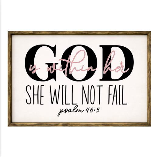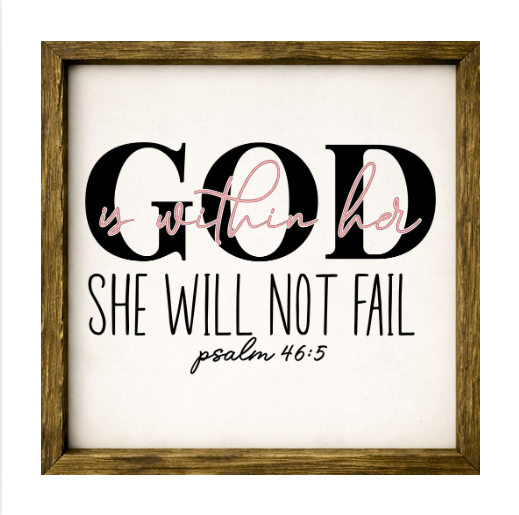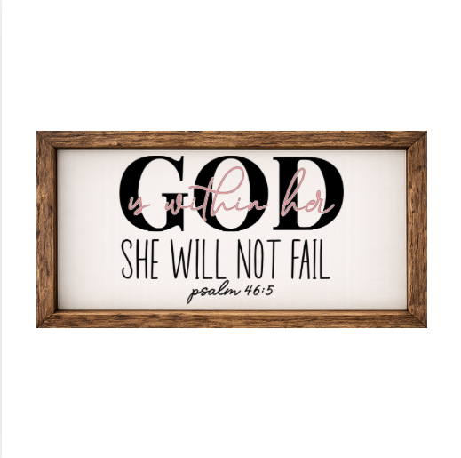 God Is With Her She Will Not Fail – Rustic Wood Framed Sign
