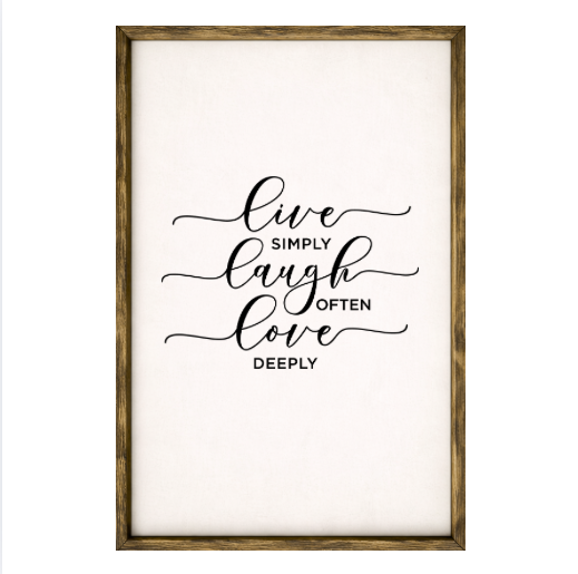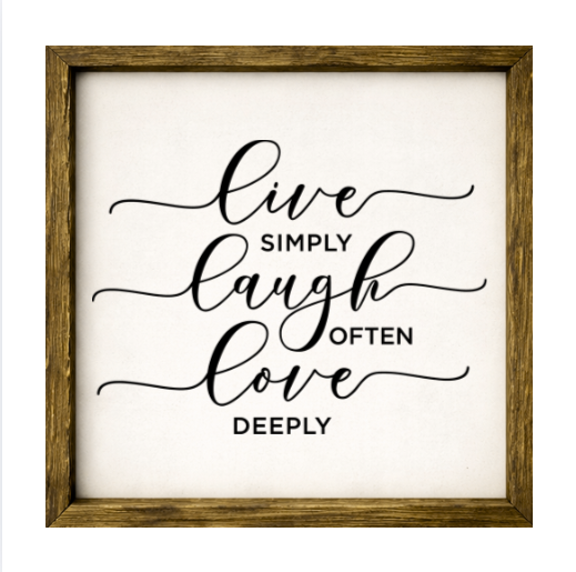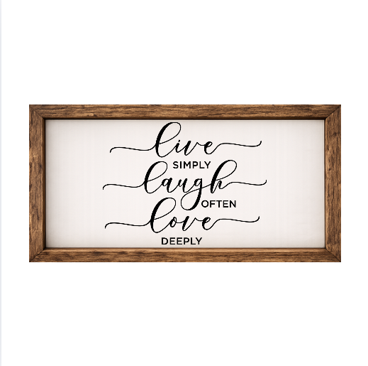 Our Live Laugh Love sign features elegant white lettering on a dark background framed in a handcrafted rustic wood box frame. The classic contrast of modern script with distressed wood makes this piece versatile for farmhouse, modern, or traditional décor styles. Each sign is built as a finished wood box, giving it depth, durability, and a high-end boutique feel. Designed to be displayed effortlessly—hang it directly from the frame or let it stand freely on a shelf, mantel, or table.