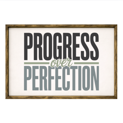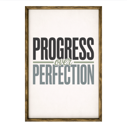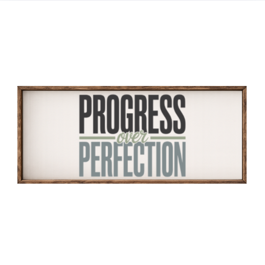 Our Progress Over Perfection sign features elegant white lettering on a dark background framed in a handcrafted rustic wood box frame. The classic contrast of modern script with distressed wood makes this piece versatile for farmhouse, modern, or traditional décor styles. Each sign is built as a finished wood box, giving it depth, durability, and a high-end boutique feel. Designed to be displayed effortlessly—hang it directly from the frame or let it stand freely on a shelf, mantel, or table.