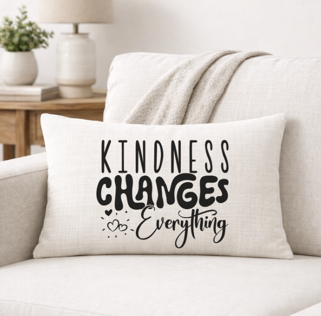Bring faith and comfort into your home with our Kindness Changes Everything linen throw pillow. Designed with a soft neutral tone and bold cross-centered typography, this pillow adds meaningful style to sofas, chairs, beds, and reading nooks.