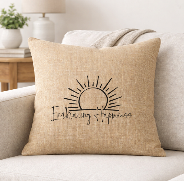 Embracing Happiness – Faith-Inspired Linen Throw Pillow