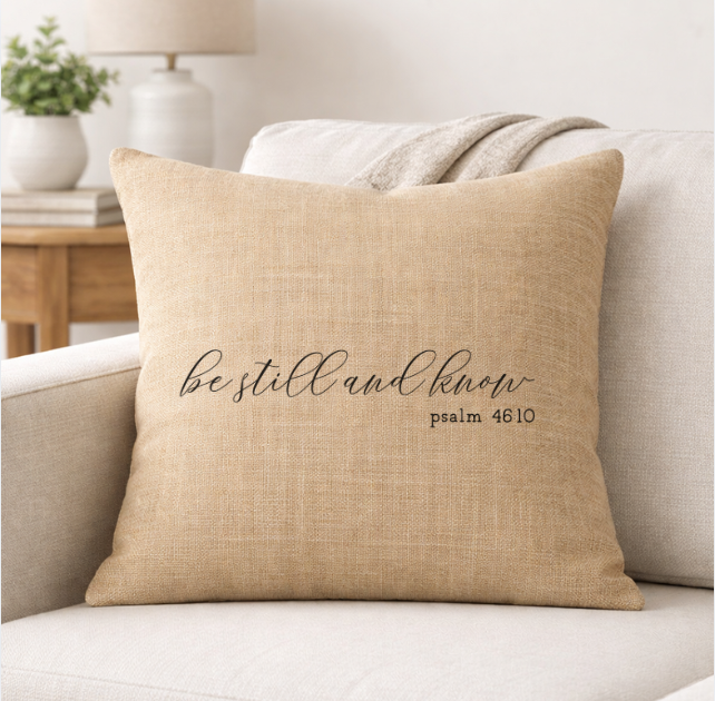 Bring faith and comfort into your home with our Be Still and Know linen throw pillow. Designed with a soft neutral tone and bold cross-centered typography, this pillow adds meaningful style to sofas, chairs, beds, and reading nooks.