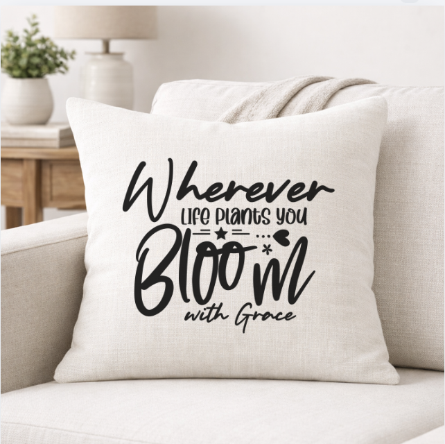 Bloom With Grace – Faith-Inspired Linen Throw Pillow
