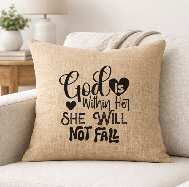 Bring faith and comfort into your home with our She Will Not Fail linen throw pillow. Designed with a soft neutral tone and bold cross-centered typography, this pillow adds meaningful style to sofas, chairs, beds, and reading nooks.